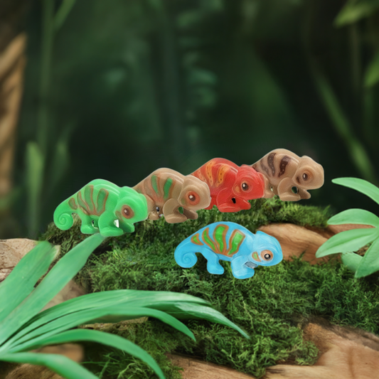 5 kleine Chamäleons in verschiedenen Farben