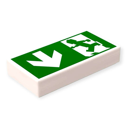 Bedruckte LEGO® Fliese 1x2 - Notausgang / Fluchtweg-Schild unten
