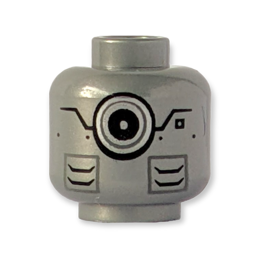LEGO Minifiguren Kopf - 4024 Dual Sided Black Eyebrows, Silver Braces with Black Straps