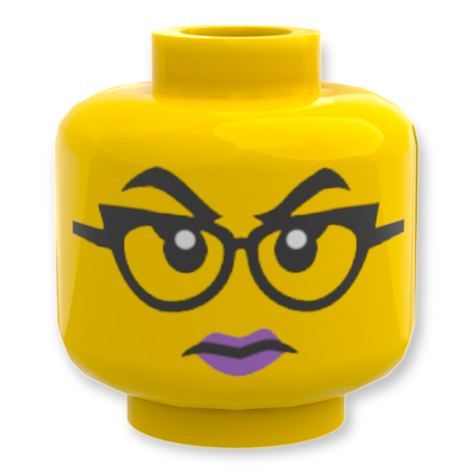 LEGO Minifiguren Kopf - 4210 Doppelseitig - weiblich schwarze Augenbrauen und Brille Medium Lavendel Lippen