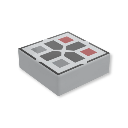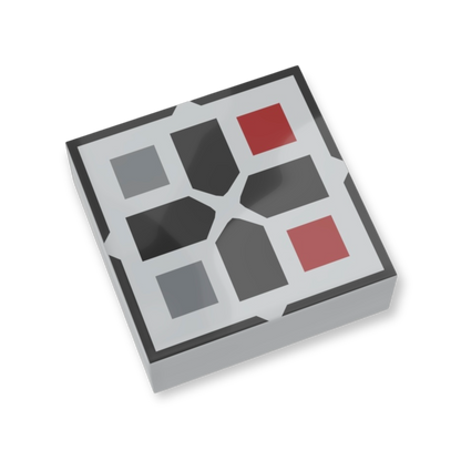 Die LEGO® Tile 1x1 mit einem schwarzen Kreuz und dunkelroten sowie dunkelblau-grauen Knöpfen auf einer Grundfarbe in Light Bluish Gray ist ein vielseitiges und auffälliges Zubehör, das deinen LEGO® Szenen eine interessante und dynamische Note verleiht. Diese kleine, aber bedeutende Fliese eignet sich hervorragend, um verschiedene Elemente in deinen Modellen zu betonen.