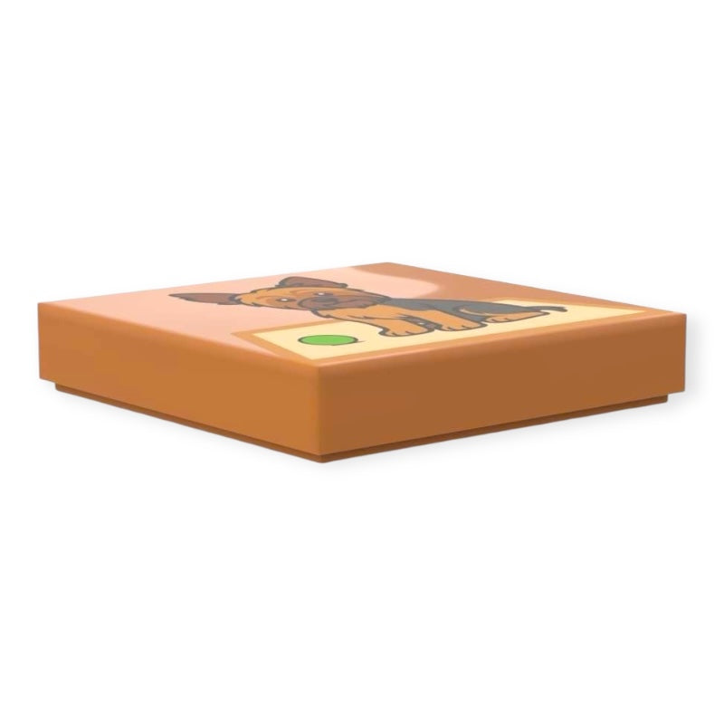 Diese liebevoll bedruckte LEGO® Fliese 2x2 zeigt einen niedlichen Yorkshire Terrier, der auf einer kleinen Matte mit grünem Ball sitzt. Das verspielte Motiv bringt tierischen Charme und Wärme in jede LEGO® Szene – perfekt für alle Hundefreunde und Haustierliebhaber.