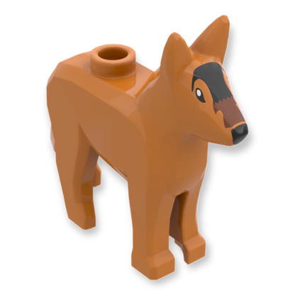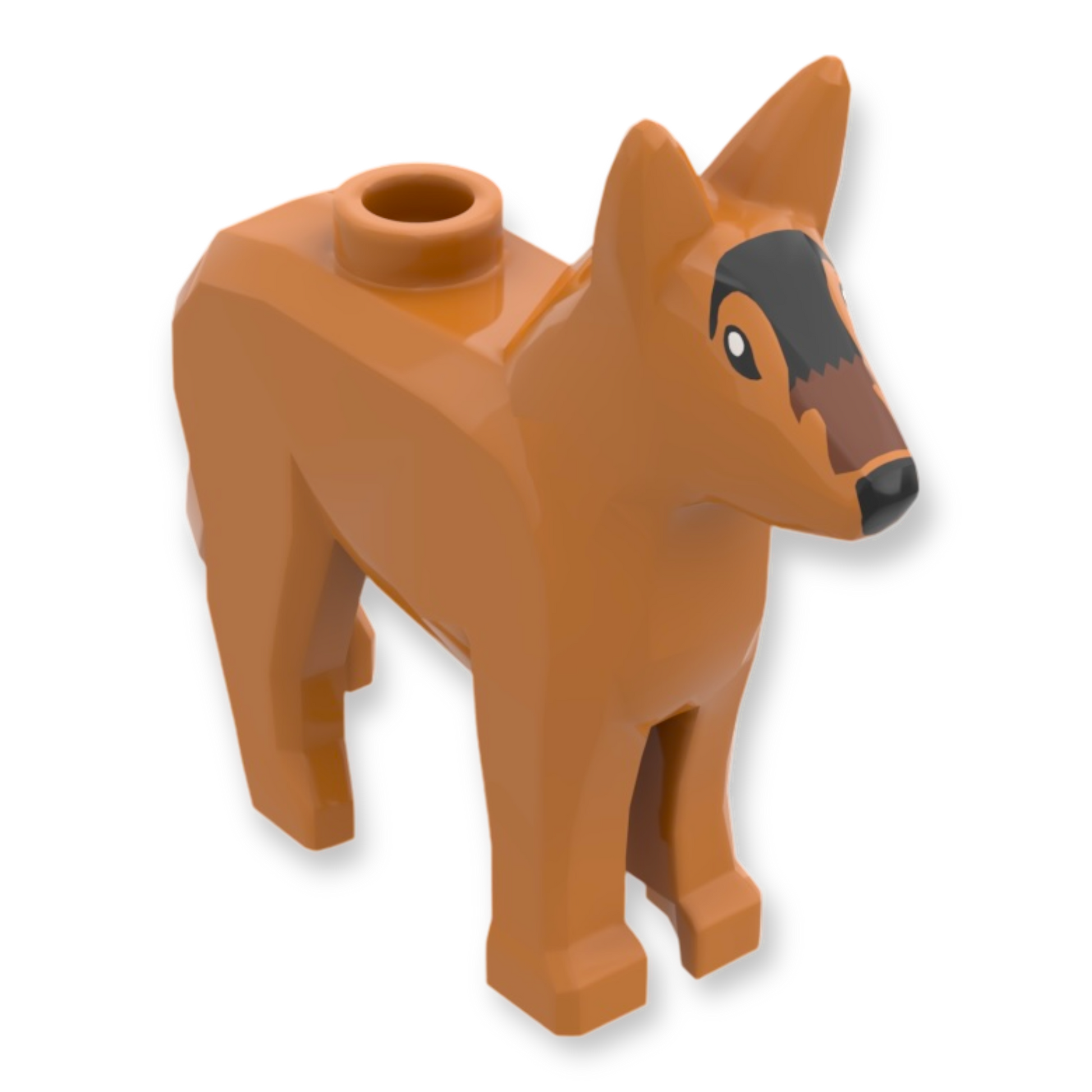 LEGO® Hund – Deutscher Schäferhund mit schwarzem Augen-, Nasen- und Stirnstreifen-Aufdruck sowie dunkelbrauner Schnauze – Ein treuer Begleiter für deine LEGO® Minifiguren
