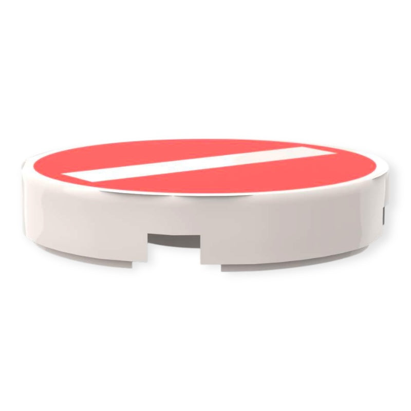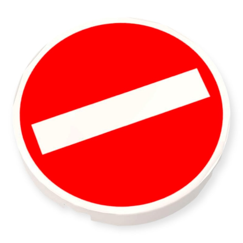 Bedruckte LEGO® Fliese rund 2x2 mit dem klassischen Verkehrsschild ‘Verbot der Einfahrt’. Der kräftige rote Hintergrund mit weißem Balken fällt in jeder LEGO® City sofort ins Auge und macht deine Straßen deutlich realistischer. Durch die runde Form lässt sich das Schild perfekt auf Pfosten, Mauervorsprüngen oder eigenen Schilderkonstruktionen montieren und passt ideal zum Minifiguren Maßstab.