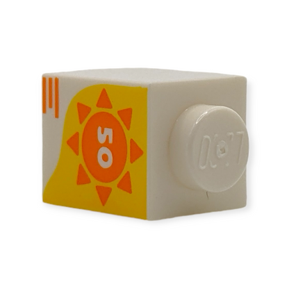 Der LEGO® Brick 1x1 mit dem Motiv Sonnencreme 50 ist ein charmantes und nützliches Zubehör, das deinen LEGO® City-Kreationen einen sommerlichen Akzent verleiht. Diese kleine Fliese eignet sich hervorragend für Szenen, die mit Strandurlauben, Sommerfesten oder Outdoor-Aktivitäten zu tun haben, und bringt eine lebendige Note in deine Minifiguren-Welt.