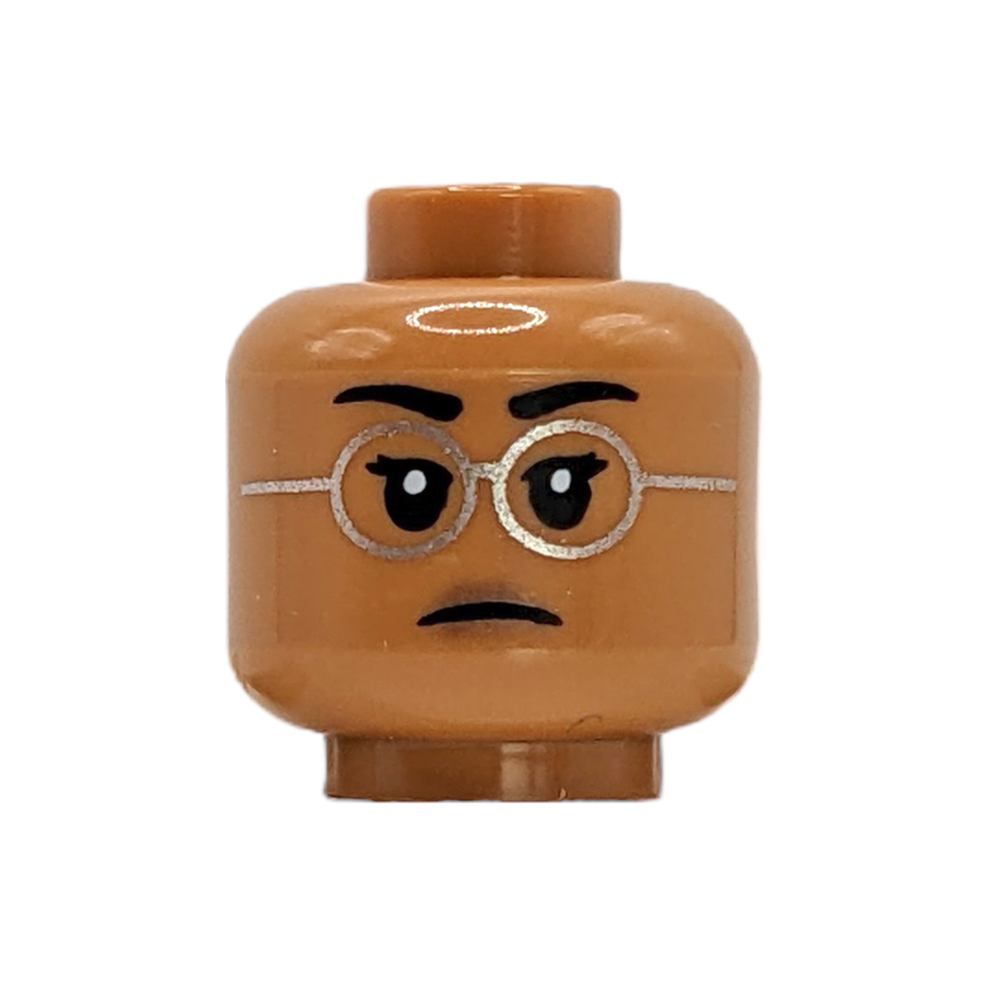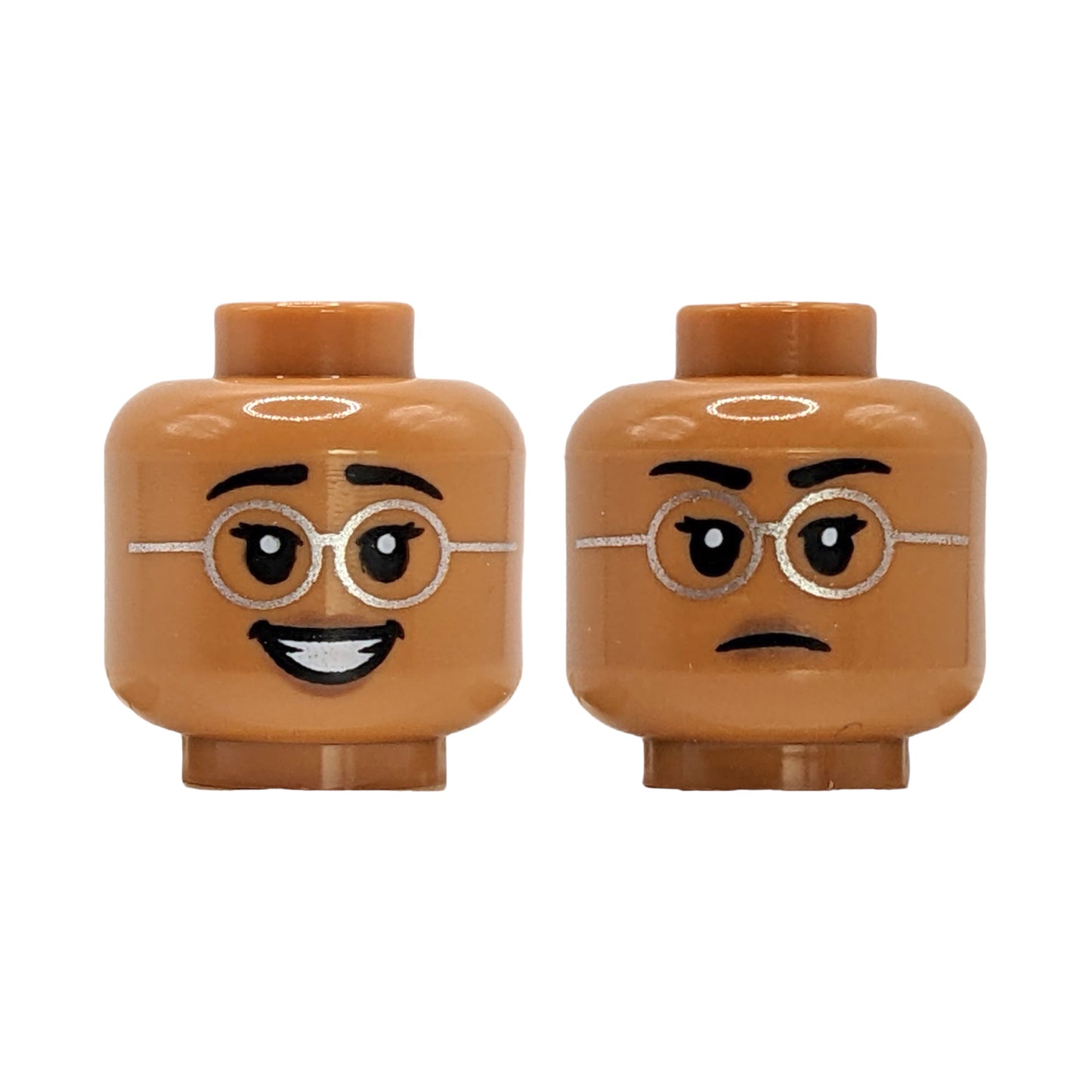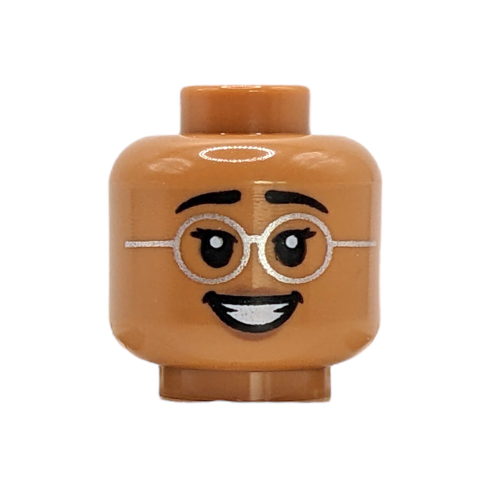 Dieser LEGO® Kopf mit doppelseitigem Gesicht bietet zwei Ausdrücke: Neutral und lächelnd mit Zähnen. Mit seinen schwarzen Augenbrauen und silbernen, runden Brillen ist er perfekt für zahlreiche Charaktere in deiner LEGO® City geeignet, egal ob als Lehrer, Wissenschaftler oder jemand in einem urbanen Szenario.