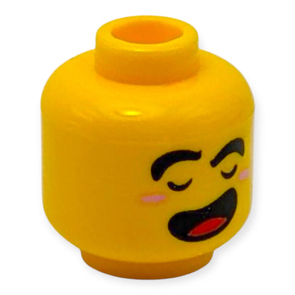 LEGO® Minifiguren-Kopf – Doppelseitig bedruckt mit dicken schwarzen Augenbrauen, geschlossenen Augen und offenem Mund mit roter Zunge / wütender Ausdruck mit gefletschten Zähnen