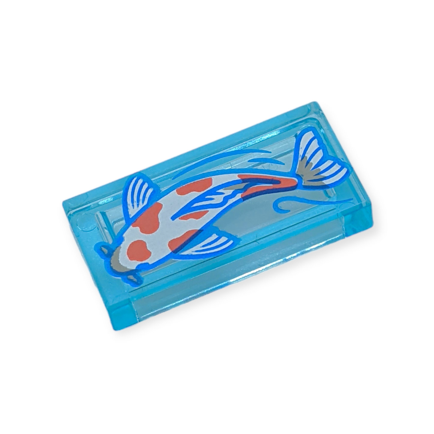 Dieser LEGO® Tile 1x2 in Trans-Light Blue mit Koi bringt nicht nur Farbe, sondern auch ein Gefühl von Ruhe und Harmonie in deine Bauprojekte und ist eine wunderbare Ergänzung für jeden LEGO® Fan.