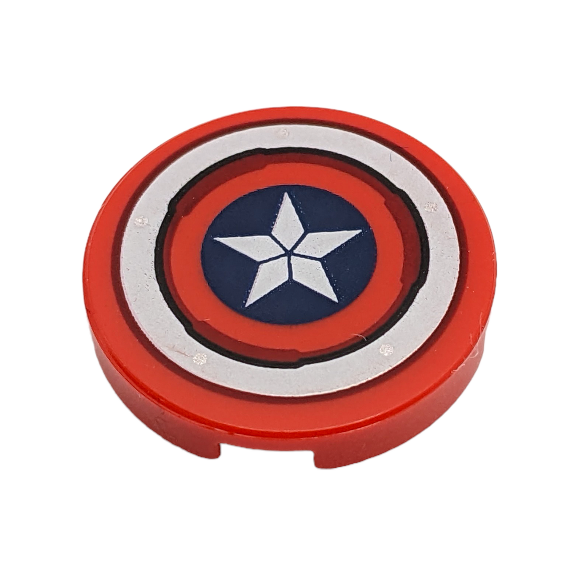 Die LEGO® Tile Round 2x2 mit Captain America Logo ist ein Must-have für alle Fans des Marvel-Universums. Mit dem berühmten Sternen-Schild-Design verleiht dieses Element deinen LEGO® Modellen einen patriotischen und heldenhaften Look, der perfekt zu Captain America's Ausrüstung und Fahrzeugen passt.